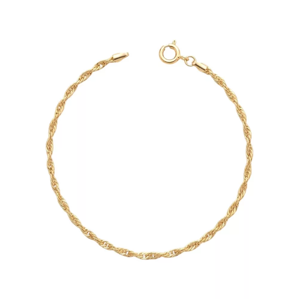 Fedezze fel a visszafogott luxust ezzel a 14 karátos sárga aranyból készült, szingapúri mintázatú karkötővel. A klasszikus eleganciát képviselő ékszer tökéletes kiegészítője a mindennapi és alkalmi öltözéknek egyaránt. A szingapúri mintázat jellegzetessége a csavart láncszemekből álló szerkezet, amely különleges, szikrázó fényjátékot hoz létre a csuklón, miközben finom és nőies marad.