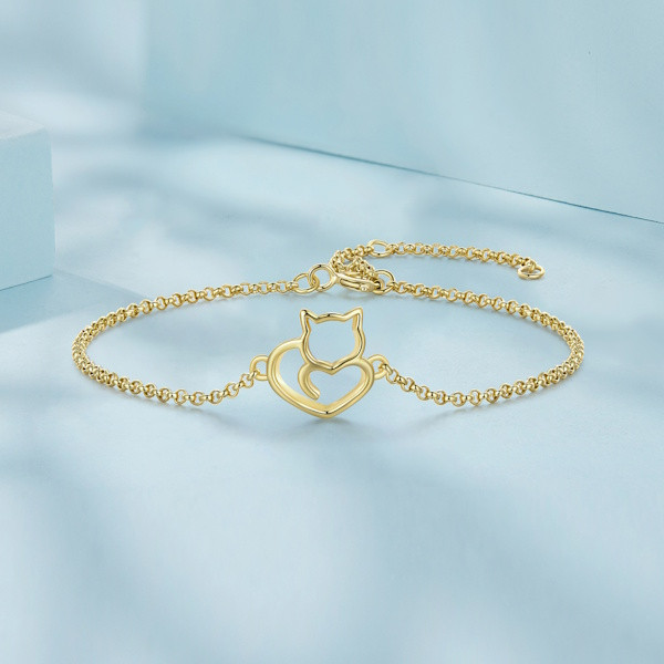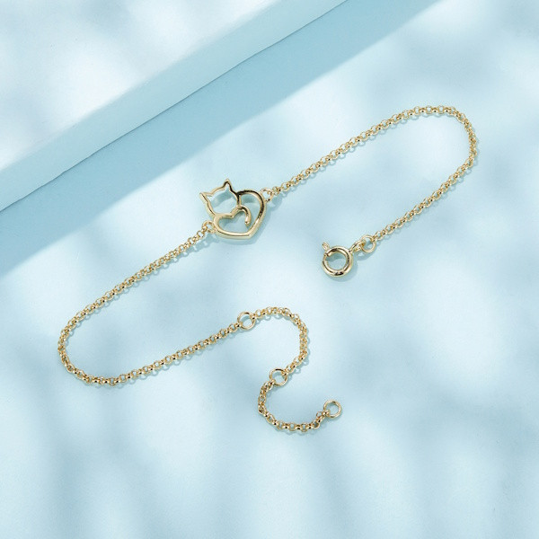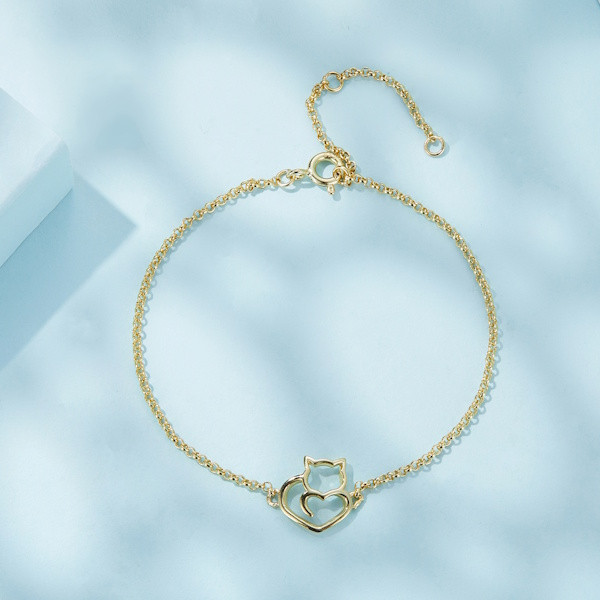Ismerd meg ezt a bájos, aranyszínű ezüst karkötőt, amely minden macskakedvelő szívét megdobogtatja! A 925 sterling ezüstből készült ékszer finom aranyozással lett megkoronázva, így különleges ragyogást kölcsönöz viselőjének. A karkötő központi eleme egy kecses macska motívum, ami a szabadságot és az eleganciát szimbolizálja.