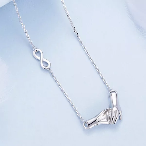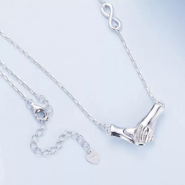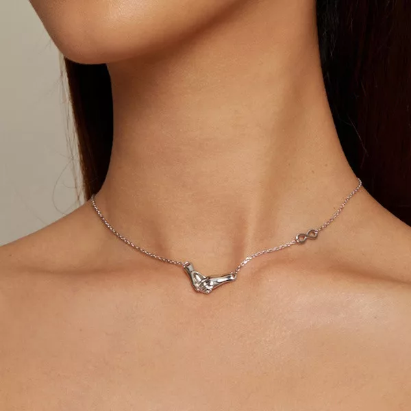 Ez a ragyogó, 925 sterling ezüstből készült női nyaklánc a finom elegancia megtestesítője. A platinabevonatnak köszönhetően nemcsak tartós és kopásálló, de csillogása is időtálló. A nyaklánc hossza, amely 40 + 5 cm, tökéletesen igazodik bármilyen nyakvonalhoz, így minden alkalomhoz illik. A medál különlegessége a kezek motívuma, amely a gondoskodás és az összetartozás szimbóluma. A kéz már ősidők óta a védelem, a szeretet és a kapcsolat jelképe, így a nyaklánc tökéletes ajándék lehet szeretteid számára, kifejezve a törődést és a köteléket. Könnyed súlya, mindössze 5.3 g, kényelmes viseletet biztosít a mindennapokban. Tökéletes választás ünnepi alkalmakkor, de a hétköznapokat is különlegessé varázsolja. Viseld, és érezd magad különlegesnek!