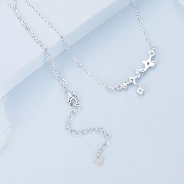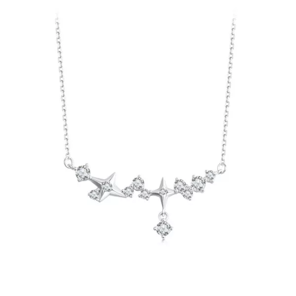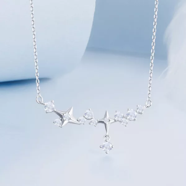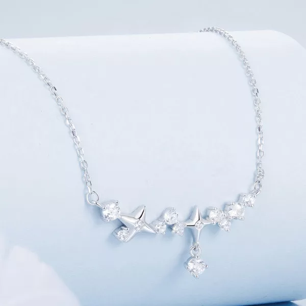 Engedd, hogy ez a káprázatos ezüst nyaklánc csillagokkal elrepítsen egy varázslatos világba! Kiváló minőségű 925 sterling ezüstből készült, amelyet finom fehérarany-bevonat borít, így nemcsak időtálló, hanem elegáns is. A nyaklánc központi elemét a csillagos medál adja, melyet ragyogó cirkóniumkristályok díszítenek, hogy minden pillantásra lenyűgöző ragyogást sugározzon. A csillag motívum a remény és az iránytű szimbóluma, mely évszázadok óta inspirálja az embereket, hogy kövessék álmaikat és megtalálják saját útjukat.