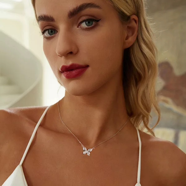 Ez a lenyűgöző, 925 sterling ezüstből készült női nyaklánc finom eleganciát sugároz, amit a fehérarany-bevonat és a csillogó cirkóniumkristály tesz igazán különlegessé. A nyaklánc hossza 40 + 5 cm, így tökéletesen illeszkedik bármilyen dekoltázshoz, míg a könnyed 2.8 g súlyának köszönhetően szinte észrevétlenül simul a bőrödre. A pillangómedál, ami 1.3 × 1.7 cm méretű, az újjászületés és a szabadság szimbóluma. A pillangó évszázadok óta a változás és a megújulás jelképe, ami különösen személyes értelmet adhat ennek a gyönyörű ékszernek. Tökéletes választás, ha szeretnél egy kis ragyogást vinni a mindennapjaidba, vagy ha egy igazán emlékezetes ajándékot keresel szeretteid számára. Lepd meg magad vagy valakit, aki fontos számodra, ezzel a varázslatos nyaklánccal!