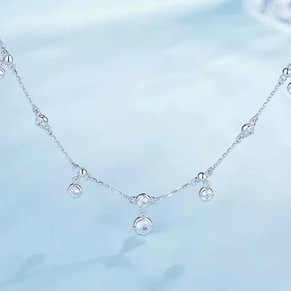 Ez a lenyűgöző ezüst nyaklánc igazi eleganciát sugároz, köszönhetően a kiváló minőségű 925 sterling ezüst alapanyagának és a hozzáadott platinabevonatnak. A kör alakú függők finoman csillognak a beépített cirkóniumkristályok révén, melyek minden fényviszonyban ragyogó megjelenést biztosítanak.