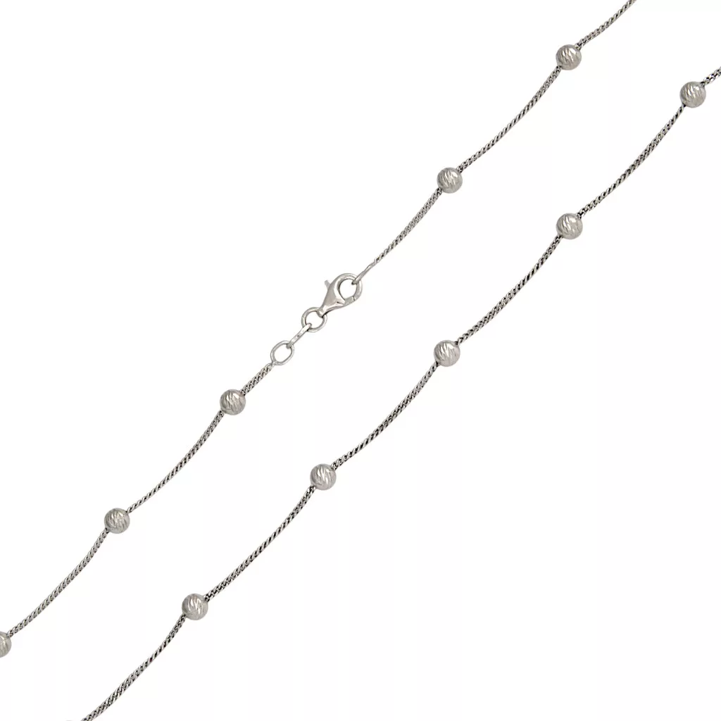 A nyaklánc igazi ékköveit a szabályos távolságonként elhelyezett, 4 mm átmérőjű, texturált golyók adják. Ezek a golyók nem sima felületűek, hanem finom barázdákkal vannak díszítve, ami különleges textúrát és ragyogást biztosít számukra.