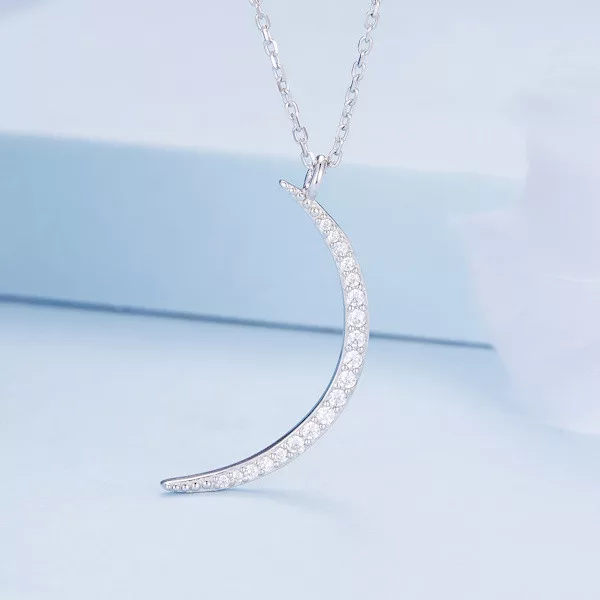 Ez a lenyűgöző, 925 sterling ezüstből készült nyaklánc a hold varázslatos világát hozza el neked. A 42 cm hosszú lánc kecsesen simul a nyakadra, míg a 3.0×1.2 cm-es holdmedál finoman csillog a platinabevonatnak és a ragyogó cirkóniumkristályoknak köszönhetően. A hold ősidők óta a változás és az átalakulás szimbóluma, emlékeztetve minket az élet folyamatos körforgására. Viseld ezt az ékszert, hogy mindig emlékezz arra, hogy minden új nap egy új kezdetet hozhat. Ideális ajándék lehet szeretteid számára, hiszen a hold varázsa mindenkinek szól, aki nyitott a világ csodáira. A nyaklánc elegáns és időtlen, bármely öltözék tökéletes kiegészítője, és garantáltan elbűvöli viselőjét. Engedd, hogy a holdfény ragyogása elkísérjen mindennapjaid során!