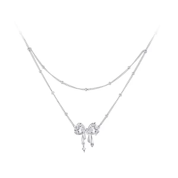 Fedezd fel az elegancia és a finomság tökéletes kombinációját ezzel a gyönyörű ezüst nyaklánccal, amelyet egy bájos masnimedál díszít. A 925 sterling ezüstből készült lánc fehérarany-bevonata ragyogó fényt kölcsönöz, míg a cirkóniumkristályok csillogása garantáltan vonzza a tekinteteket.
