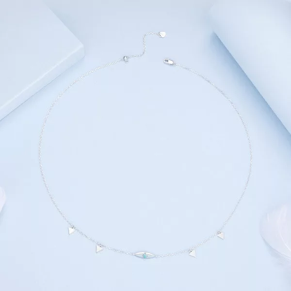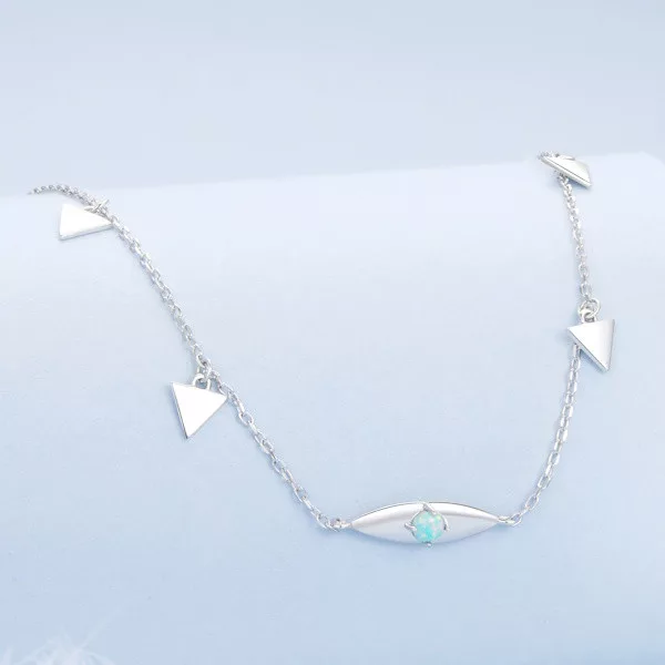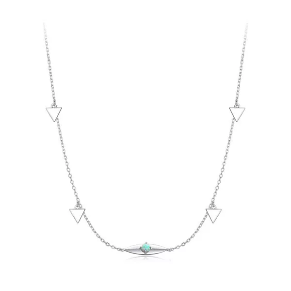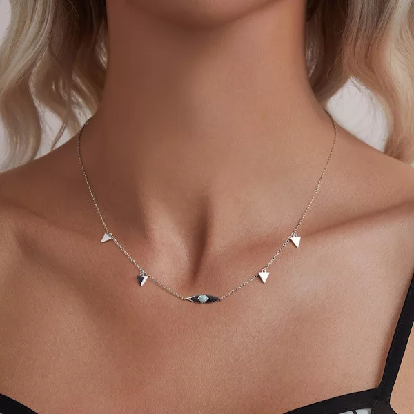 Fedezd fel az elegancia új szintjét ezzel az ezüst nyaklánccal, amelyet az opálkő csillogása tesz igazán különlegessé. A 925 sterling ezüst alapanyagnak köszönhetően a nyaklánc nemcsak időtálló, de rendkívül stílusos is, míg a fehérarany-bevonat elegáns ragyogást biztosít. Az opálkő háromszög alakú medálja bármely öltözékedet feldobja, miközben finom, modern megjelenést kölcsönöz.