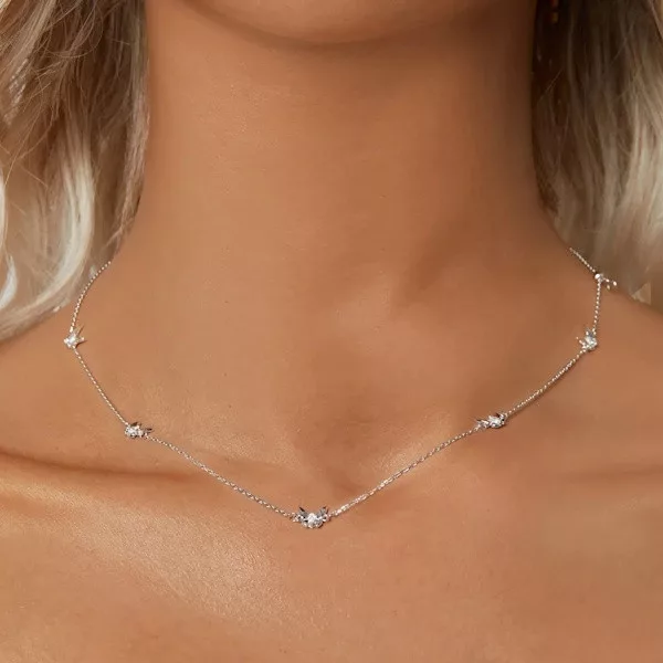 A 925 sterling ezüstből készült láncot platinabevonat teszi még elegánsabbá, míg a csillogó cirkóniumkristályok finom ragyogást kölcsönöznek neki. Könnyű, kényelmes viselet a mindennapokra vagy különleges alkalmakra.