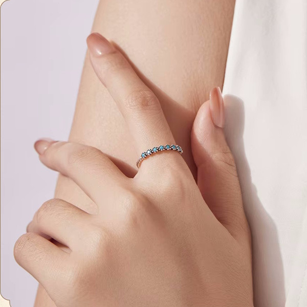 Oxidált ezüstből készült női gyűrű szintetikus türkizzel. Szélessége 0.16 cm, súlya 1.2 g.
