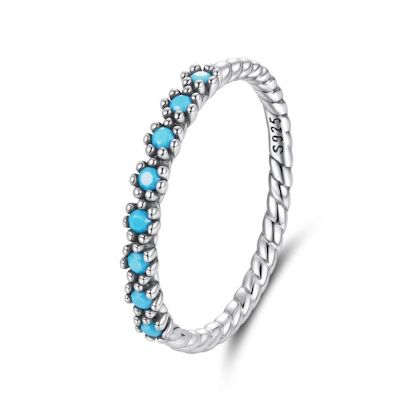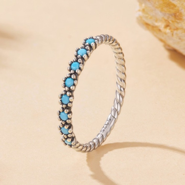 Oxidált ezüstből készült női gyűrű szintetikus türkizzel. Szélessége 0.16 cm, súlya 1.2 g.